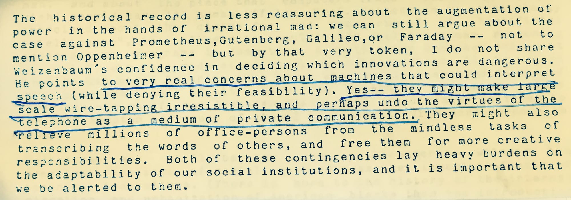Found this in a book review from the 1970s ("Computer Power and Human Reason", incidentally written by the guy who also wrote Eliza)