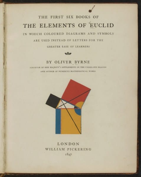 - A nice collection of randomly interesting stuff from the Library of Congress archives (such as the attempt, in 1847, to make Euclid more accessible … see image at top).