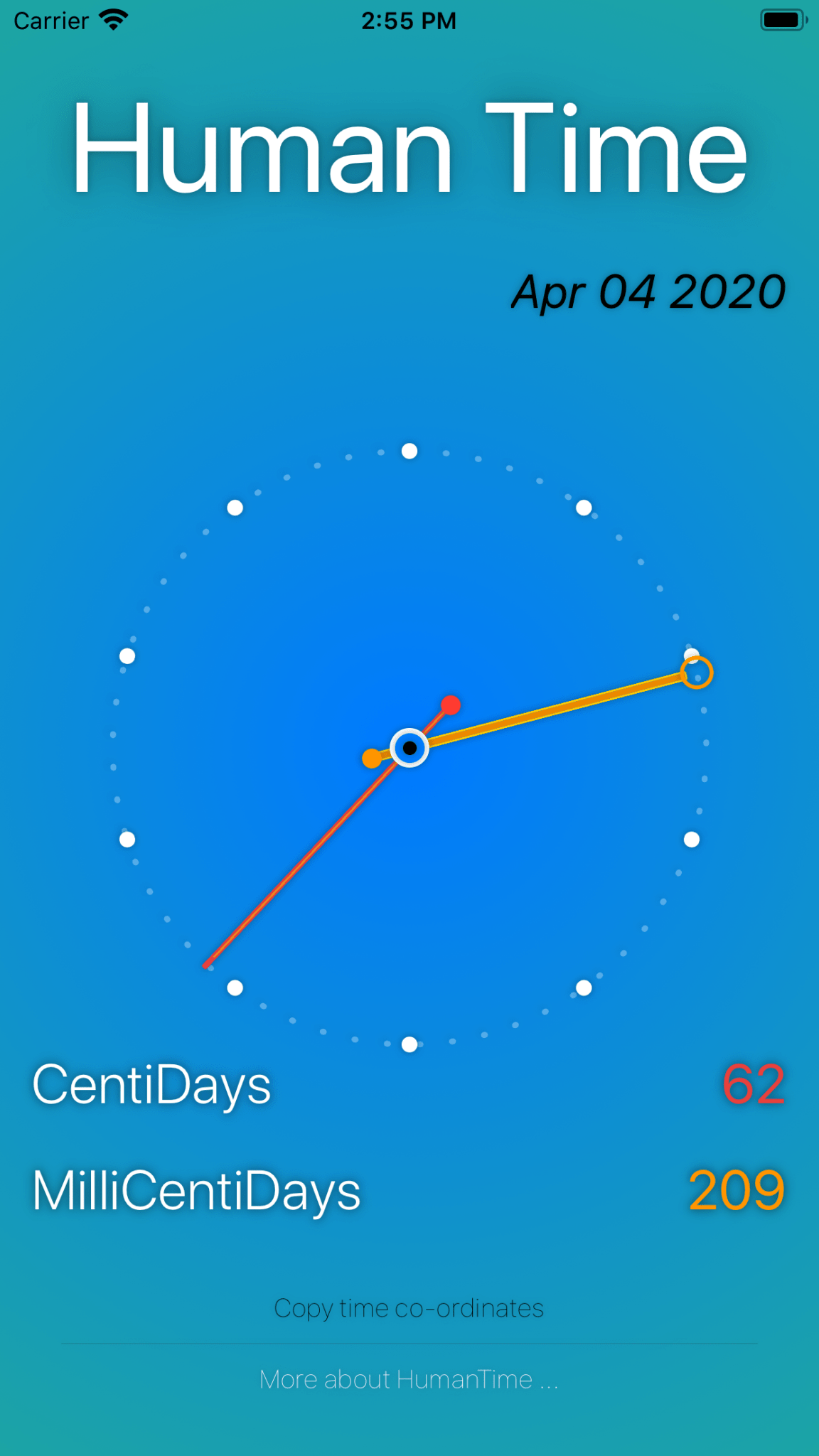 About a year ago, I had an iPhone, and wondered what it would take to make an app for this. I had still never made a mobile app, but SwiftUI had recently been released, and … the state of app development seemed way less grungy, and SwiftUI did live up (mostly) to its promise of being a (mostly) declarative framework … so I made a prototype (using centi-days and milli-centi-days), and then forgot about it again.