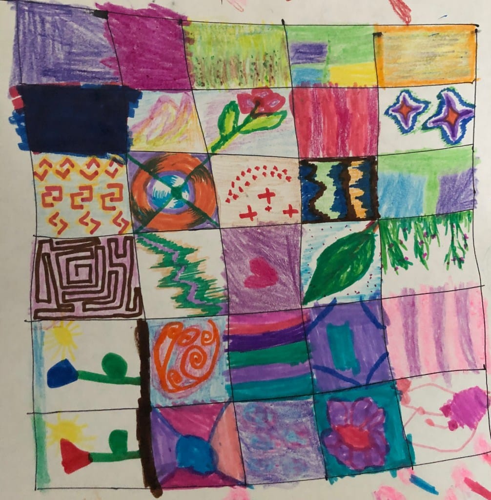 - No rules at all, about what to draw. It’s okay to fill it with one color. It’s okay to fill it with two colors. It’s okay to make a single circle or square within it. It’s okay to have a wavy patter. Whatever you like.