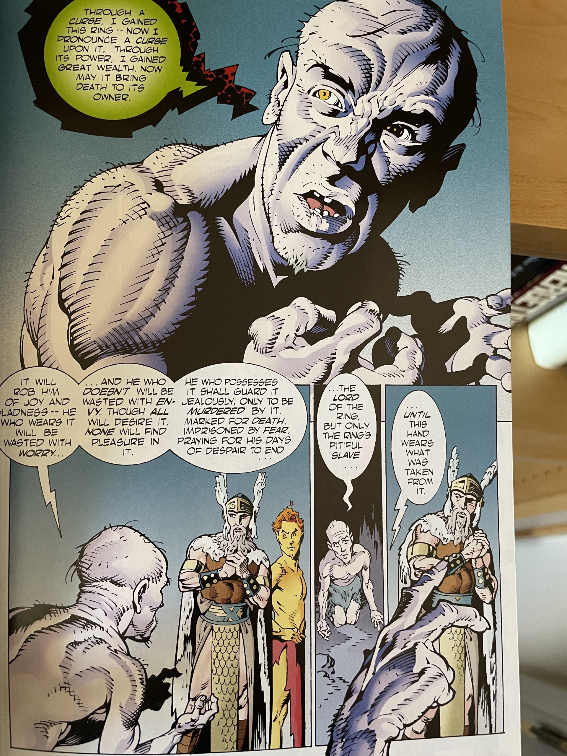 More than the story itself, I see echoes, in terms of names, and scenes and themes, which remind me of that other epic saga, The Lord of the Rings.