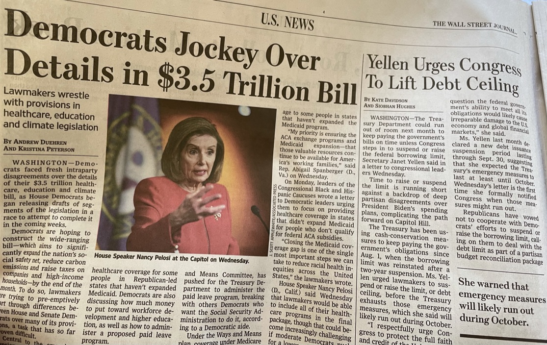 On one hand, "we need to raise the debt ceiling, we're about to default, the Treasury will exhaust emergency measures", on the other hand, "we need to borrow another 3.5T"