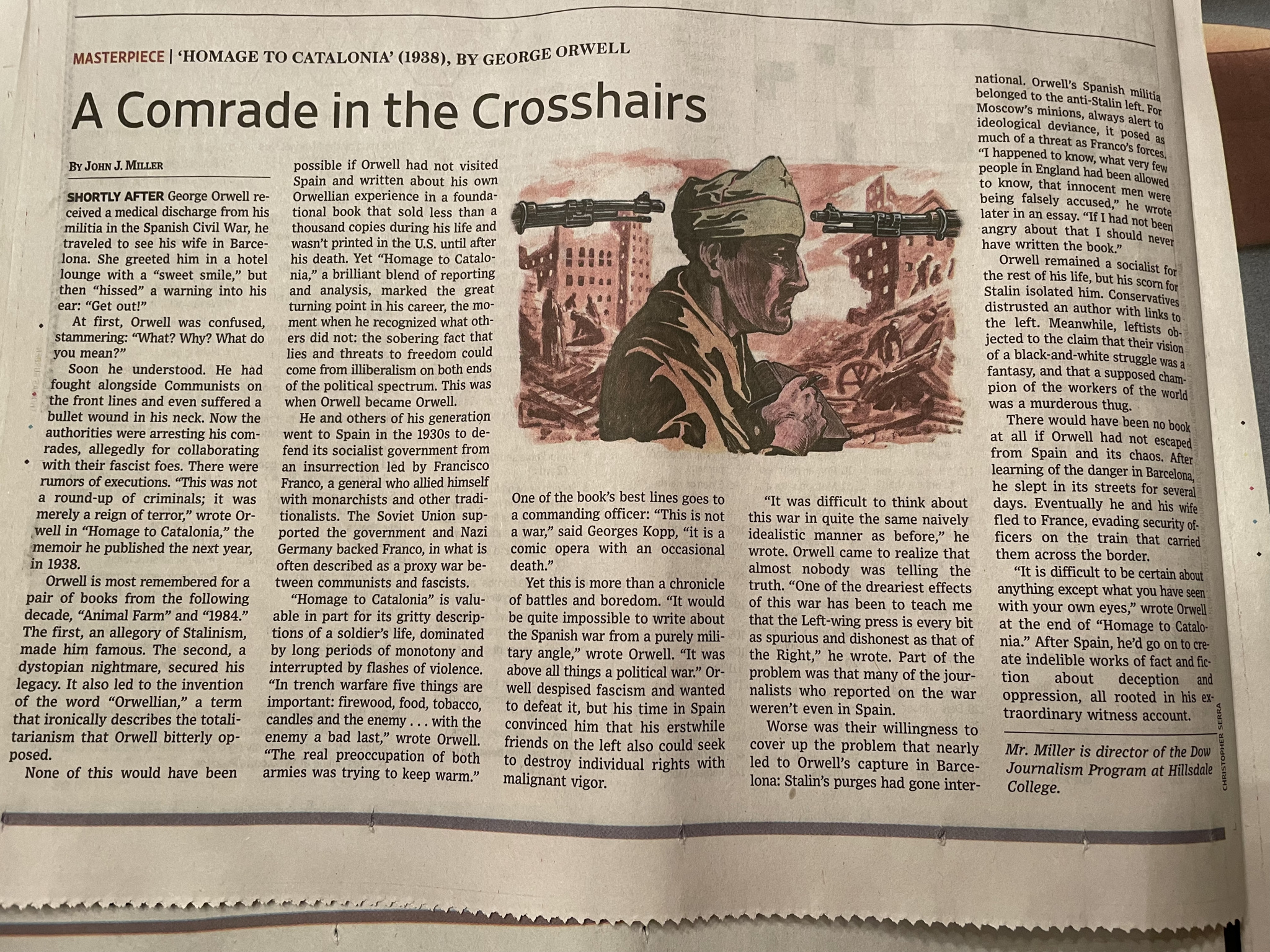 Clips from the weekend newspaper September 26, 2021 by Agam Brahma Reading Newspaper "Animal farm" and "1984" would've never happened if Orwell hadn't escaped the nightmare he later wrote about.