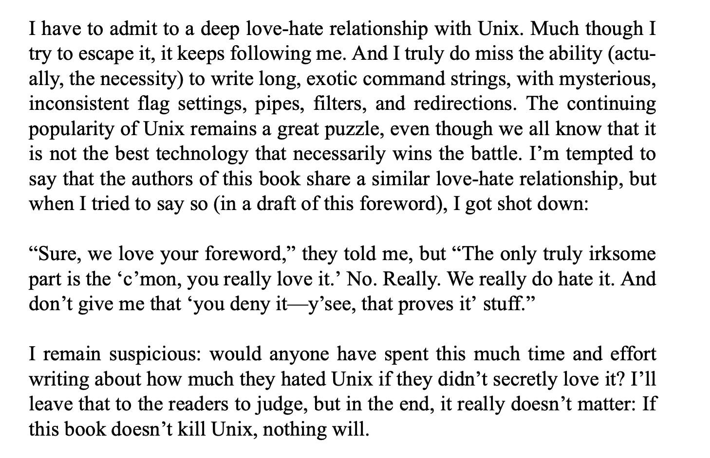 From the foreword to "The Unix Haters Handbook" by Donald Norman, author of previous works like "The Trouble with Unix: The User Interface is Horrid", and "The Design of Everyday Things", and a fellow at Apple and IDEO.