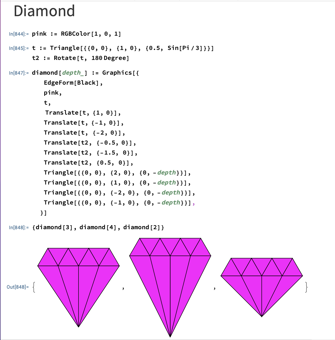 More Wolfram Mathematica fun, when my daughter wanted to make a "diamond shape" in "hot pink".