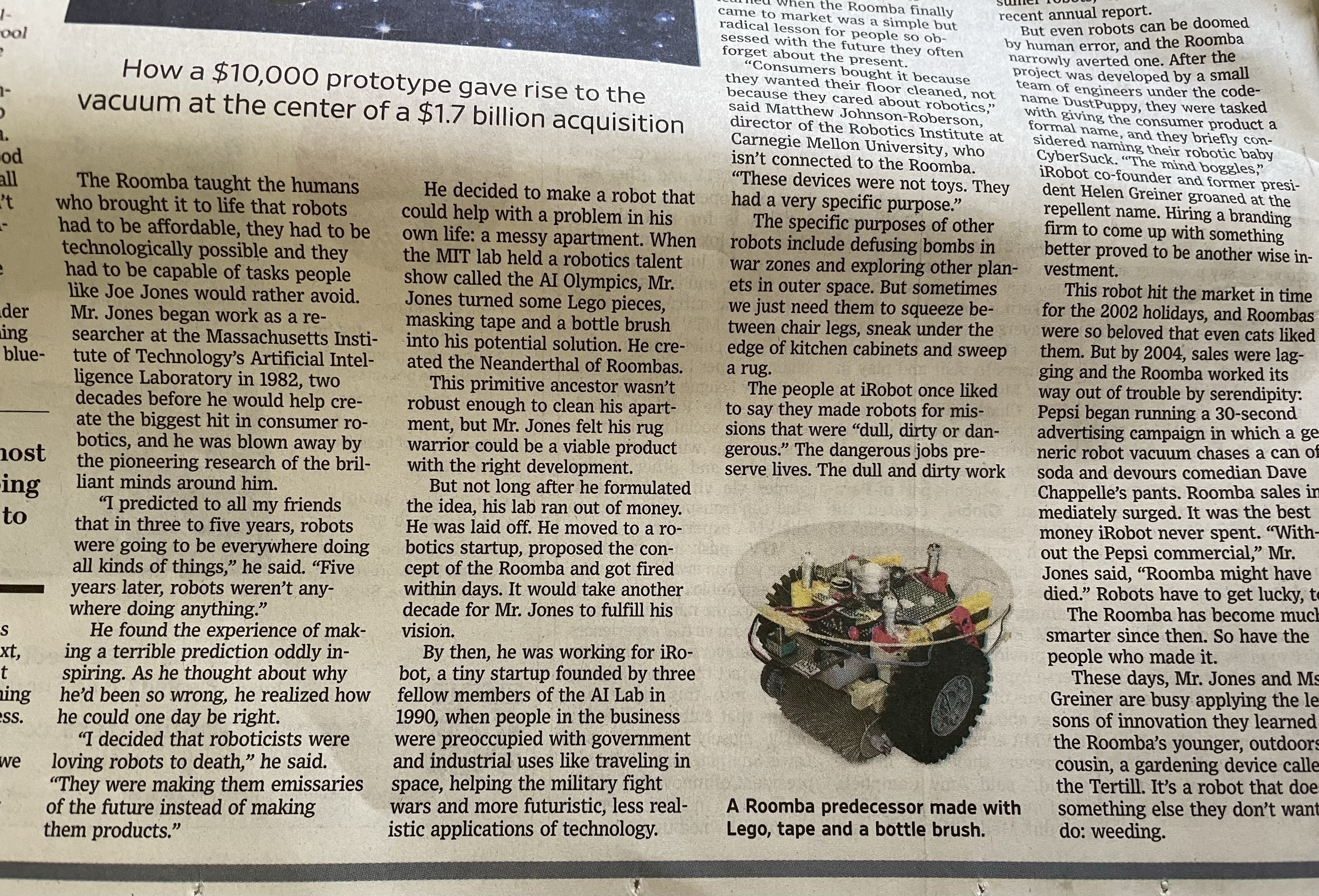 Learnt more about the "origin story" of Roomba from an article in the WSJ this weekend.