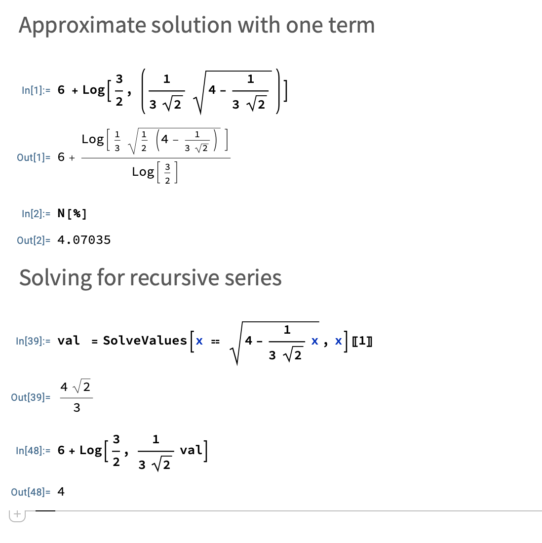 The above shows a "sanity-checking" approximate solution with one term, followed by the correct solution.