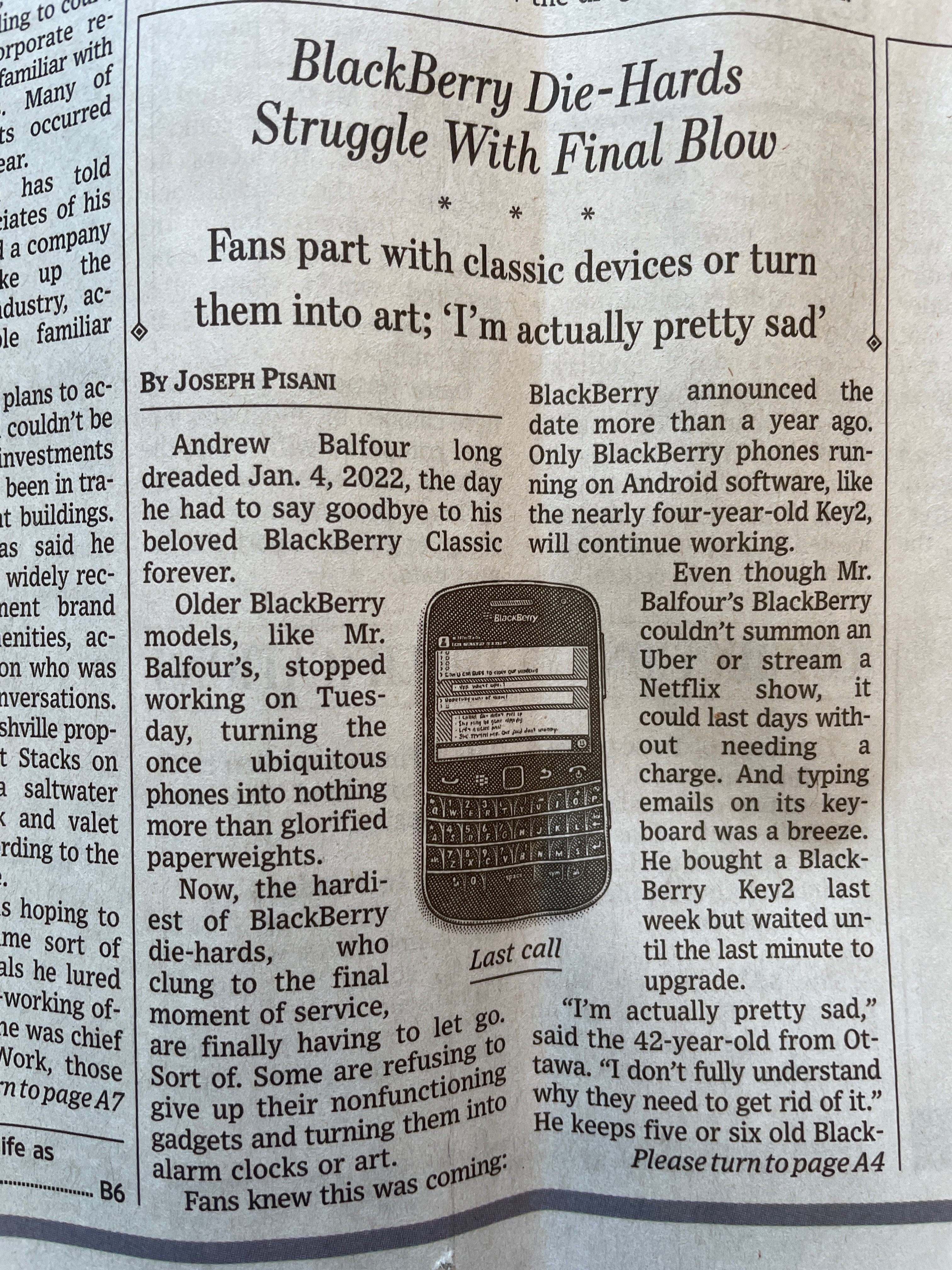 Blackberry finale December 19, 2022 by Agam Brahma Tools blackberry History All good things must come to an end, a personal technology lesson that’s hard to learn.An article from WSJ about the “final deprecation”