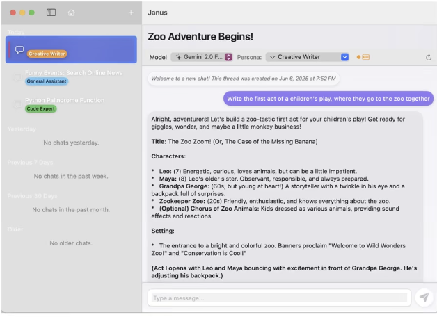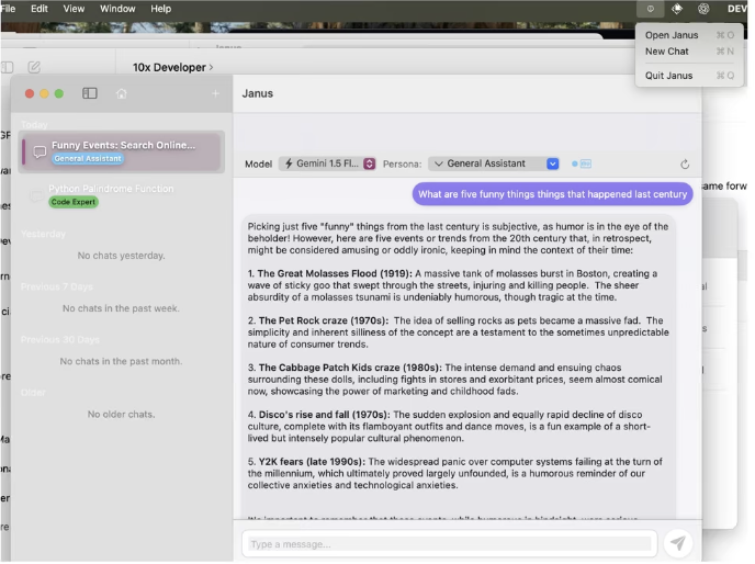 - Crafted for thinkers, readers, and builders, JanusX helps you explore ideas through curated personas and timeless texts — all powered by your own Gemini API key.